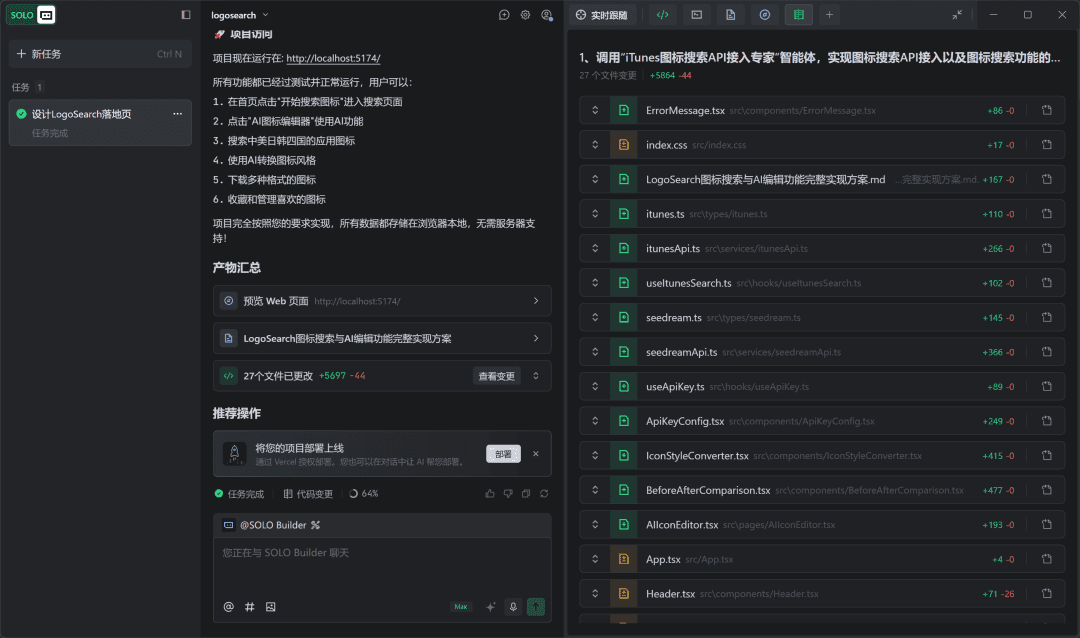 如果说SOLO Builder更适合从0到1,那SOLO Coder,更适合完成从1到100的迭代。