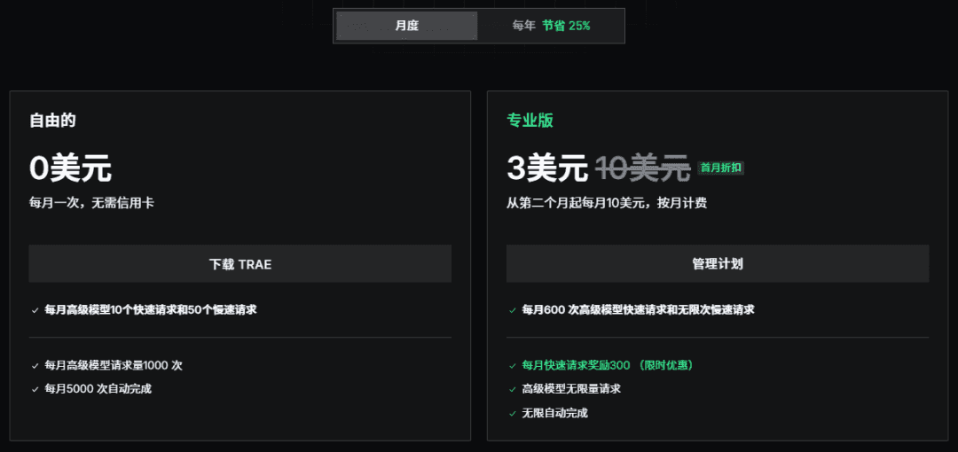 现在官方定价是首月3美元,这几天是纯粹的限免,然后Pro用户每月有600次快速请求额度,限时赠送300额度的额外礼包。