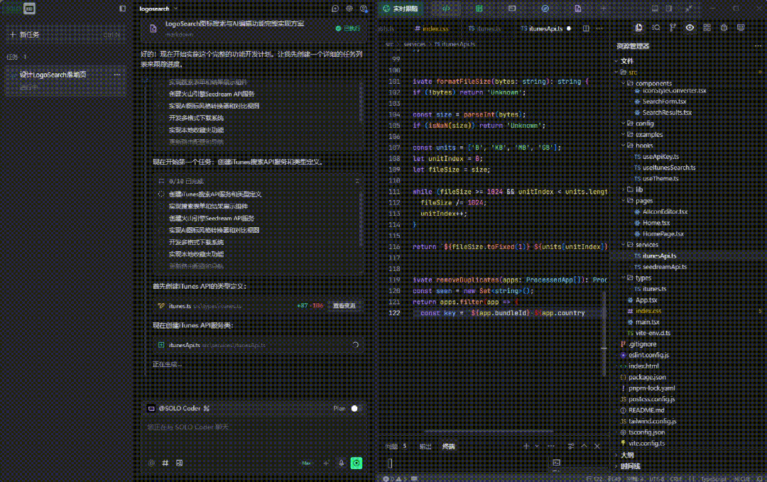 SOLO Builder做一个空壳小demo - 找APP logo的数据源 - 把一些规范封装成智能体 - 使用SOLO Coder制定开发计划 - SOLO Coder在原内容上进行开发 - 调试 - 部署。